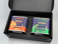 Balení obsahuje dva kanystry po 150g nebo 250g v černé dárkové krabici.