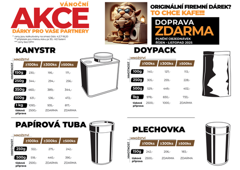 Naše výběrová káva s vaší značkou je skvělým způsobem, jak zanechat dojem, udělat radost i ukázat vděk za celoroční spolupráci.